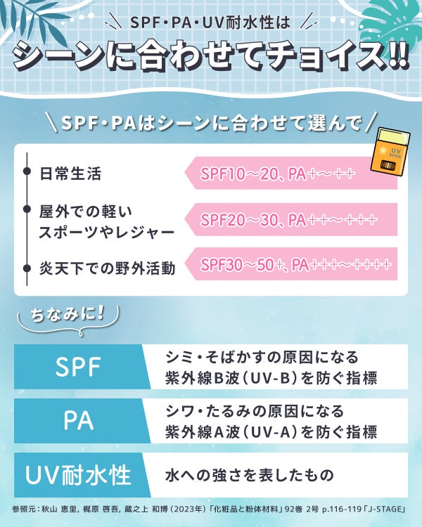 ①シーンに合ったSPF・PA値・UV耐水性かチェック!