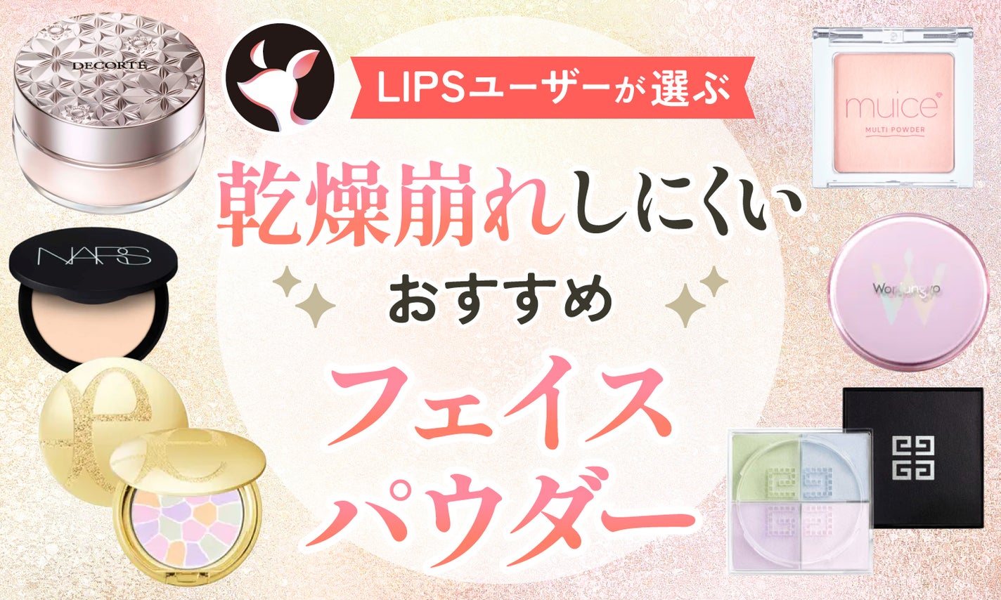 そこでこの記事では、プチプラからデパコスまでLIPSユーザーさんおすすめの乾燥肌向けフェイスパウダーをランキング形式&口コミ付きで紹介します。乾燥しにくいフェイスパウダーの選び方や崩れにくい使い方も解説しているので、ぜひ参考にしてください。