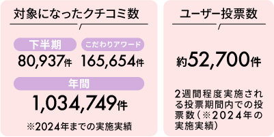 年間・半期の部門賞はもちろん、「こだわりアワード」という商品特長にフォーカスしたアワードも。総合的な評価で決定する各部門賞と「こだわりアワード」の2つがあることで、注目を浴びた商品を網羅し、トレンドを反映したベストコスメを目指しています。