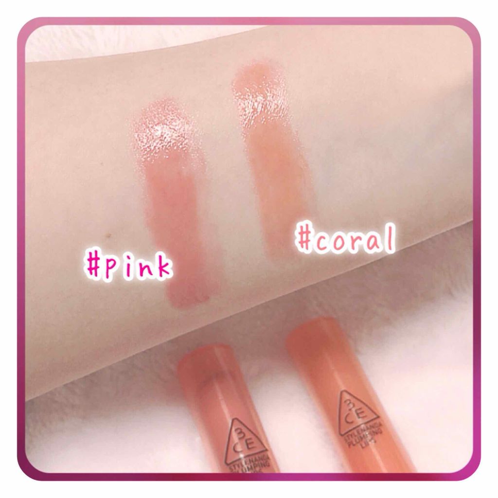 3ceのSTYLENANDAのコスメラインぷっくりツヤ感のボリュームのある唇になれる「PLUMPINGLIPS」のれびゅーでございますぅぅぅ∩^ω^∩🌈🌈🌈(単価¥1,200〜/全カラー5色)画像でのカラーはコーラルとピンクです。カチカチっと...