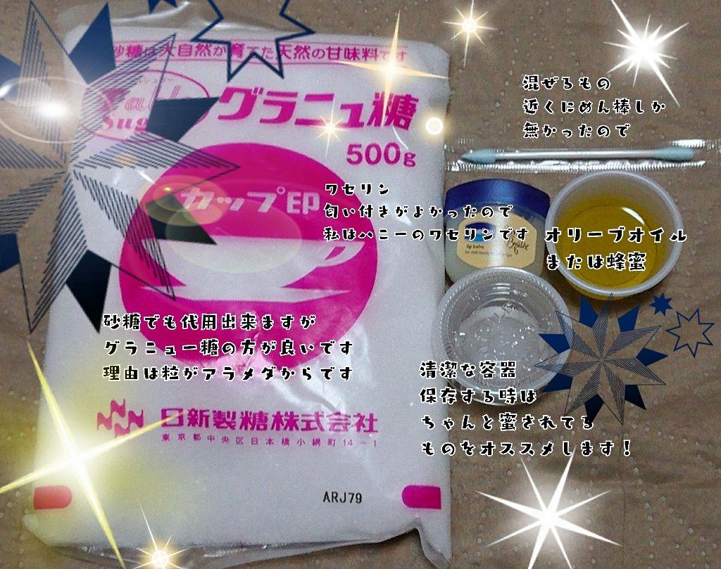 初めまして数ある中から見て頂きありがとうございますm(*__)m見にくかったり言葉が足らないかもしれませんその時はすみせん~用意するもの~※二枚目の写真にも乗っています꙳★*゚ワセリン今回は匂い付きにしました!唇のケアをしながら匂いでリラック...