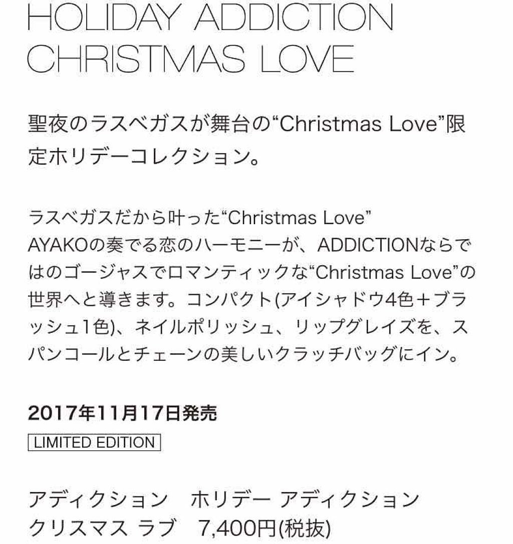 商品詳細情報ADDICTION ホリデー アディクション クリスマス ラブ (クリスマスコフレ2017)