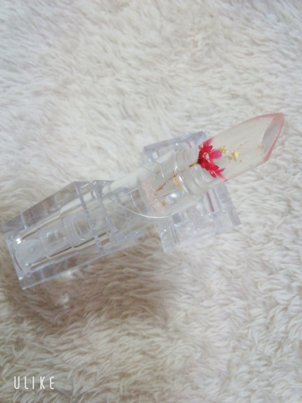 - 透明なリップスティックの中にドライフラワーと金箔が入っているPHや唇の水分量によって発色が変わるティントリップ。長時間しっとり潤う唇をキープして発色長持ち。※すべて同じ色に発色します。