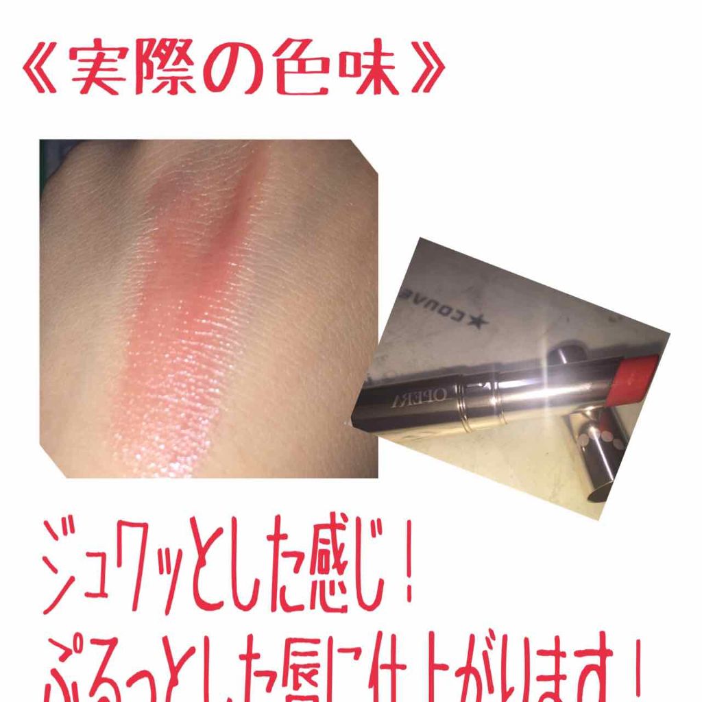 今まで何種類もリップを使ってきましたが、1番お気に入りがこちらです! 色はシアーなオレンジ味を感じるレッドで、落ちにくく、鏡を見なくてもキレイに塗り直せるところが気に入っています! 柔らかくとろける塗りごごちでとても塗りやすいです!