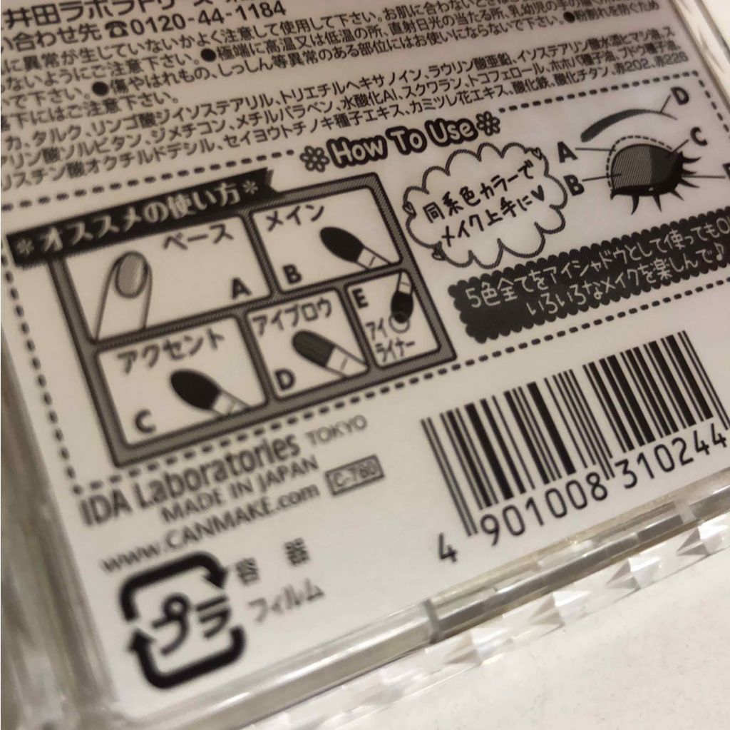 - アイメイク、これ1つで完了❤ アイシャドウ・アイブロウ・アイライナーとマルチに使える ラメなしマットな5色入りアイシャドウパレット 肌にとけ込むやわらかな陰影で、愛らしいナチュラルでか目に。 明度の違う同系色ブラウンで構成されたパレットなので、きれいなグラデーションが簡単に完成。 ナチュラルメイク派、学校・会社メイクにもぴったり! 撥水効果のあるオイルを配合することで、キレイが長持ちします。