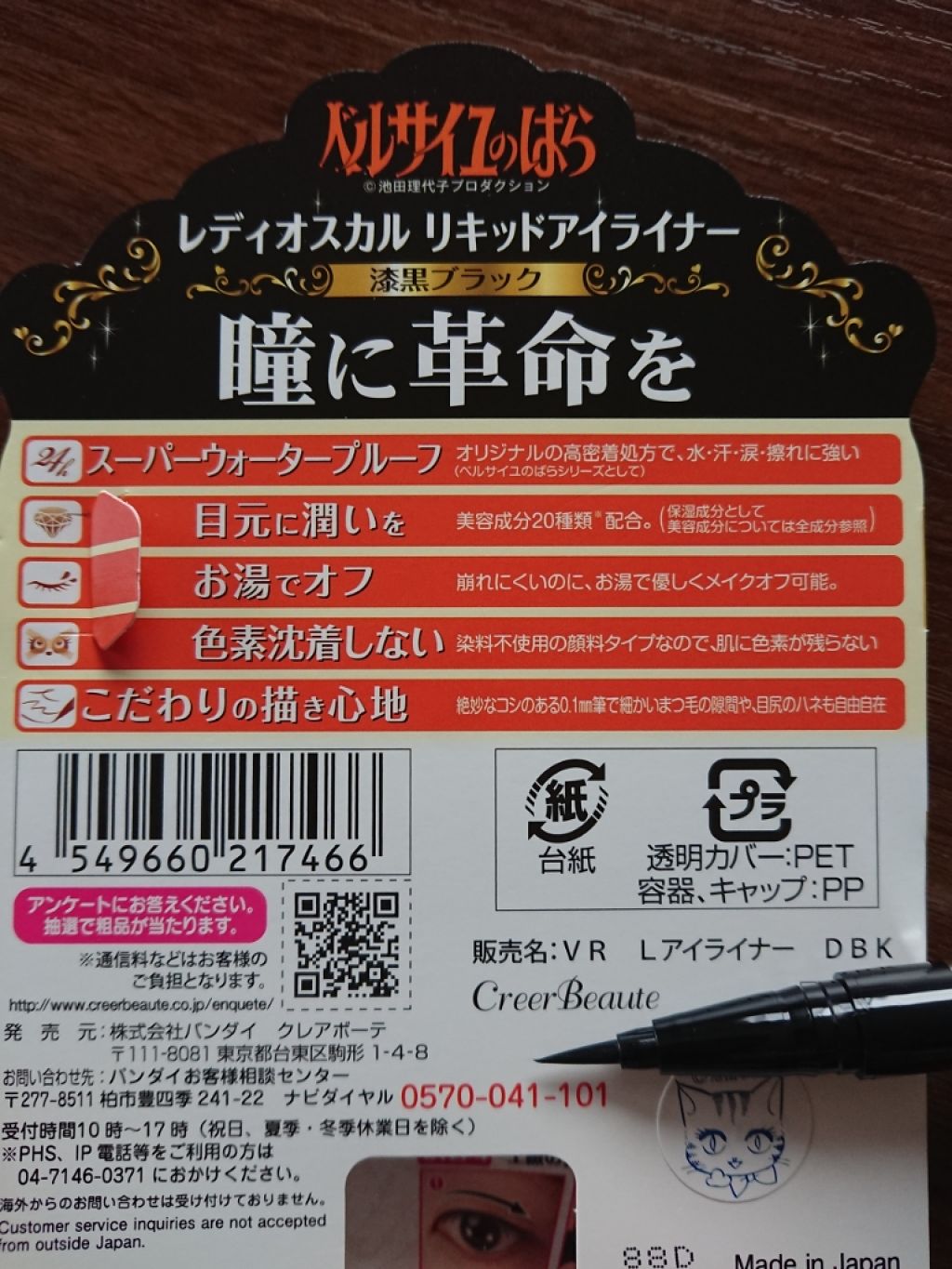 商品詳細情報クレアボーテ ベルサイユのばら リキッドアイライナー