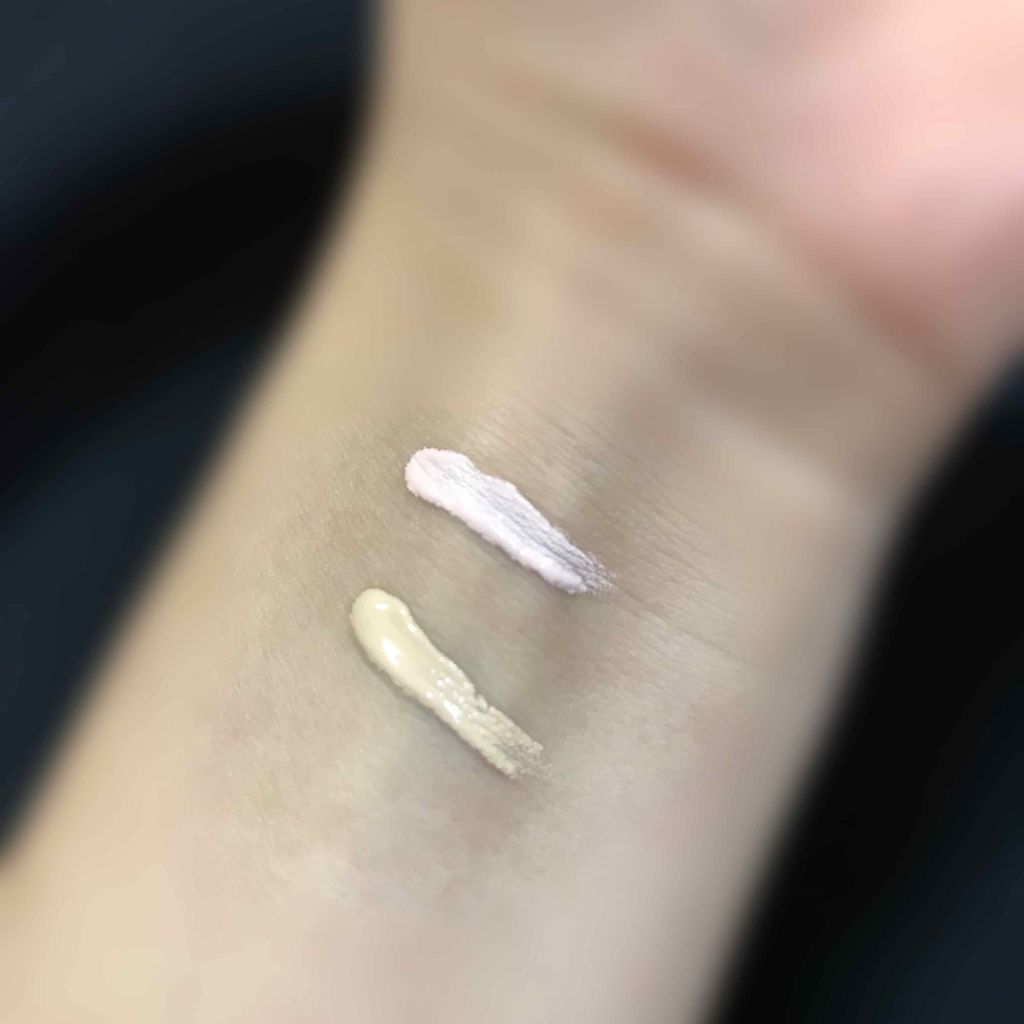 この2色パッケージで見るとよく似ているんですが肌に塗ってみたら明らかに違った!笑 そしてどちらも私の肌色になじむかも! ・01クリアベージュは基本的に顔のベース部分に合う色味。毛穴が、消え…て、る……😳??! チップなので塗りやすいですし、量の調整がしやすいかなと。