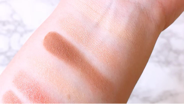 使いやすそうなカラー🧡🤎 暖色系が似合っているみたいで、年中通して最近はオレンジ系多め🍊 発色とても良く、9色も入ってるのがすごい👏 粉質はほろほろでかなり柔らかめ~♡ 指でポンポン付けても可愛い🩷 使い始めだからブラシで取るとかなり濃いめの発色✨それもまた良い🔅