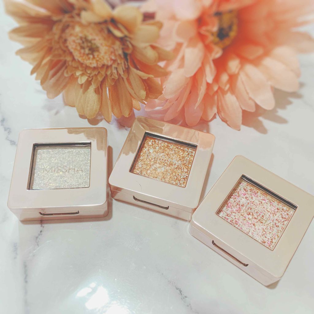 ✔︎MISSHAグリッタープリズムシャドウ結構前に買ったMISSHA!これ全色集める気満々だったけど、色が出過ぎて諦めたもんなぁー。たしか結構な数買ったと思うw多色ラメがとにかく綺麗!赤茶に見えるけど塗ると別物。とにかく締め色に使ってたなー。...