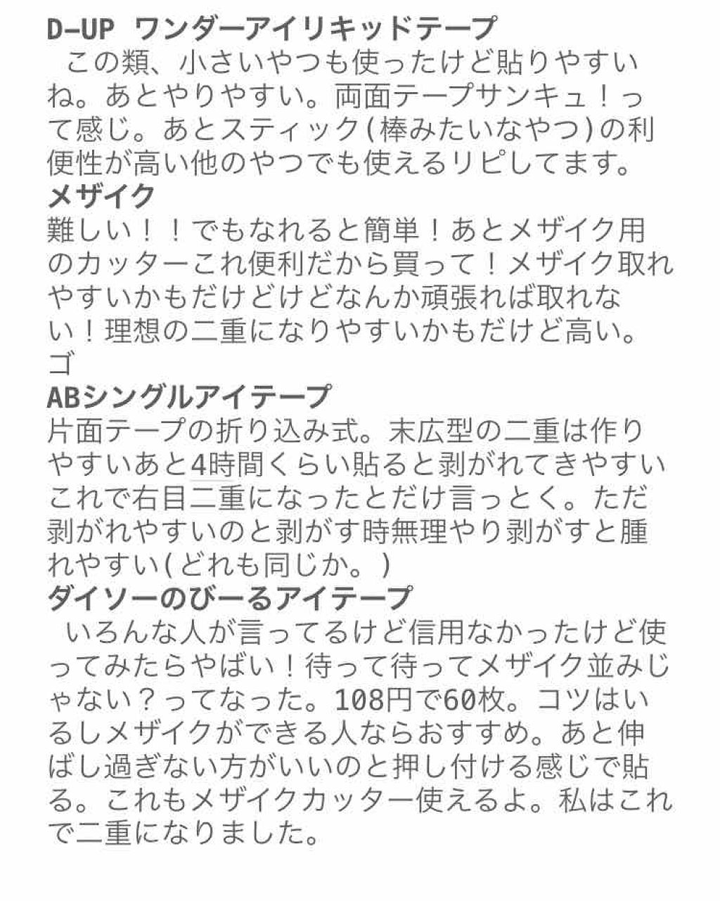 | 二重のり・アイテープランキング第27位 | 非接着タイプ、バレないしメイクにも影響しづらくておすすめ❤︎ | 詳細を見る |