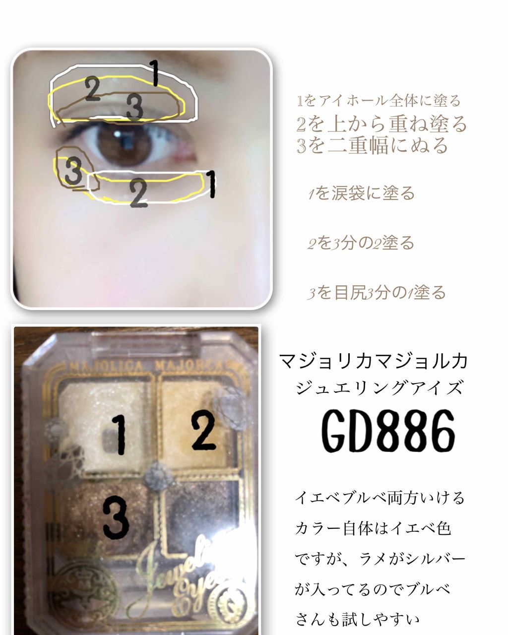 | クリーム状のキラキラしたアイベースと、綺麗なグラデになる3色シャドウがセット | 詳細を見る |