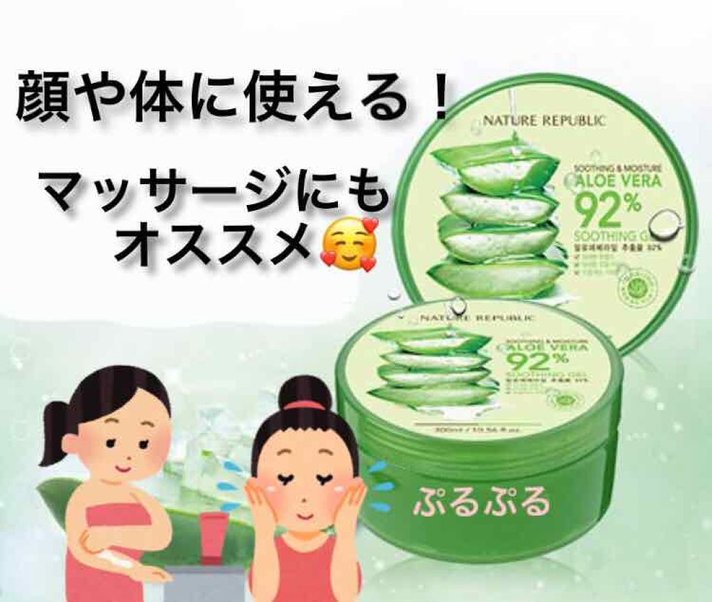 *ネイチャーリパブリックスージングアロエジェル*お風呂上がりの保湿用に、抑毛効果を狙って購入しました。2つ使い切って最近3つ目を開けたところです。全身に使っているのでたっぷり入っているのですが、思いの外早くなくなります。Amazonで3つで1...