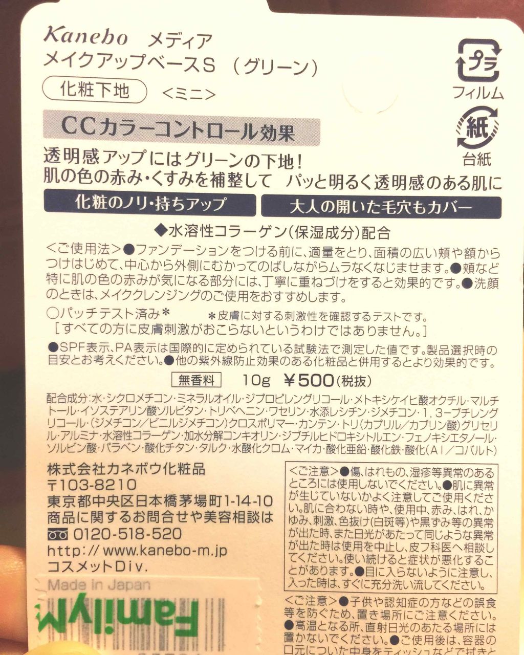商品詳細情報media メイクアップベースS(グリーン)