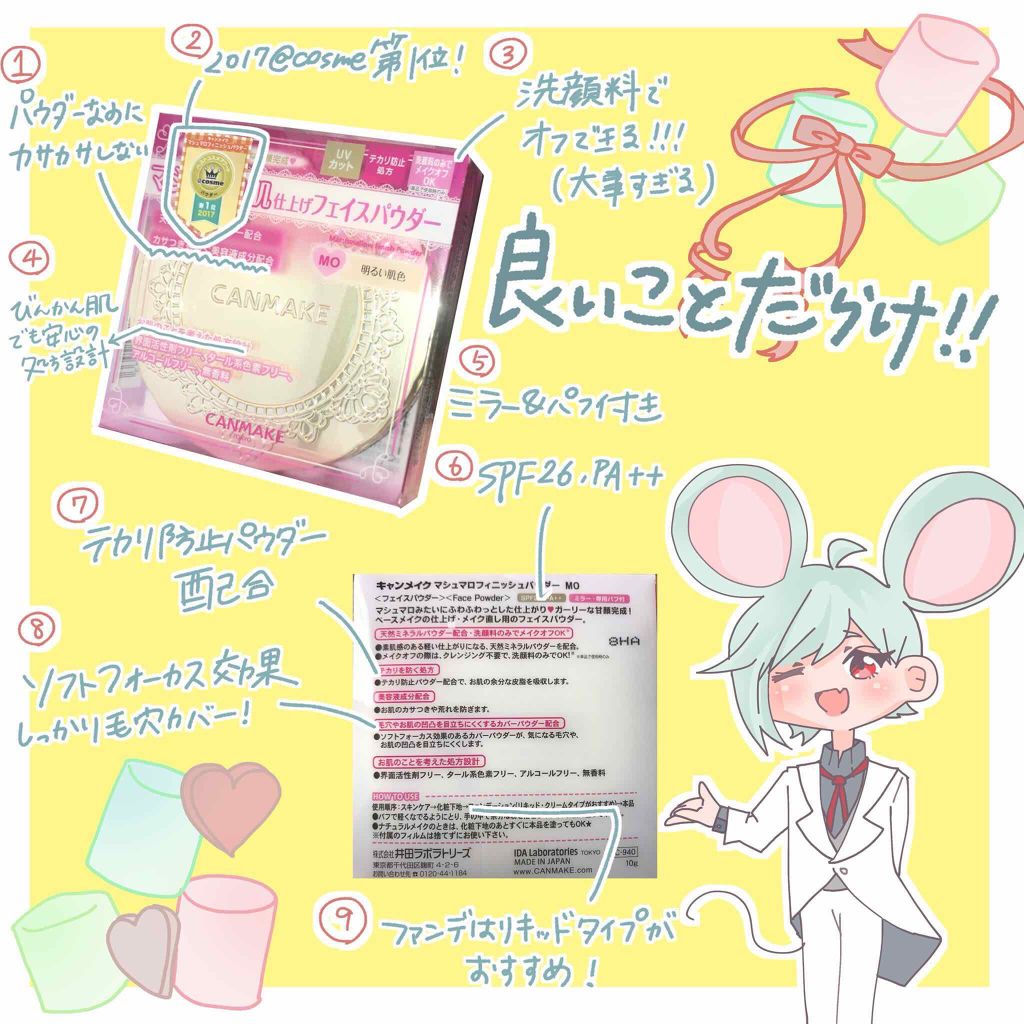| フェイスパウダーランキング第20位 | 元から美肌にみせてくれるようなコスメなので、スクールメイク、お泊まりメイクなどにオススメ! | 詳細を見る | |