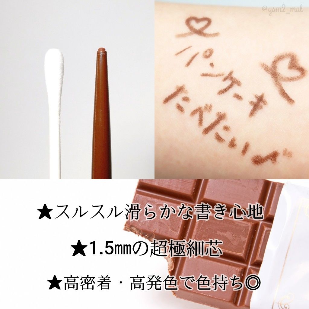 - 2024.6月下旬~ 容器デザインが順次リニューアル 尚、これにかかる商品の返品・交換は承っておりません。 とろける描き心地がたまらない! 1.5mmの超極細ジェルアイライナー くっきり濃密発色!キレイなラインが長続き。 1.5mmの超極細芯で、まつげのすき間埋めもラクラク♪ くり出しタイプなので使いやすい! 一度乾いて密着すれば、とにかく落ちにくい!