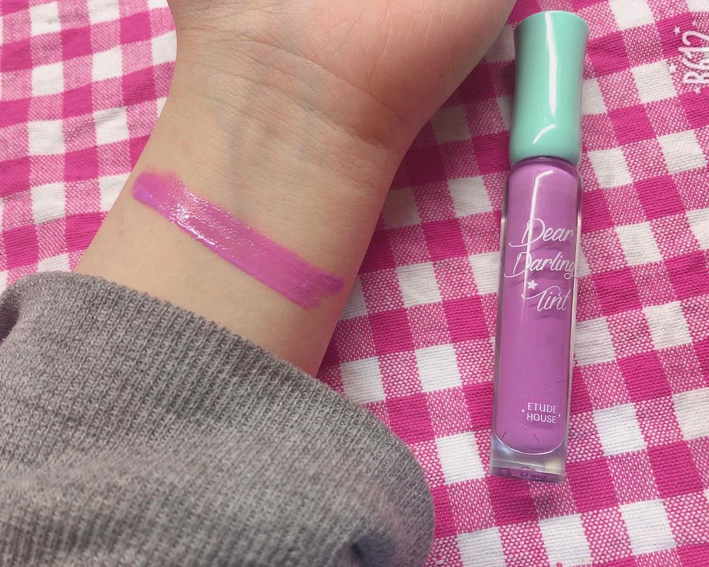 塗ると紫から青みピンクに変わります。 ピンクラメが入っていて可愛いです♡ 匂いはおもちゃのコスメみたいな感じで臭いです、、 #韓国コスメ#エチュード#リップ#プチプラ#プチプラリップ #プチプラコスメ#ティント