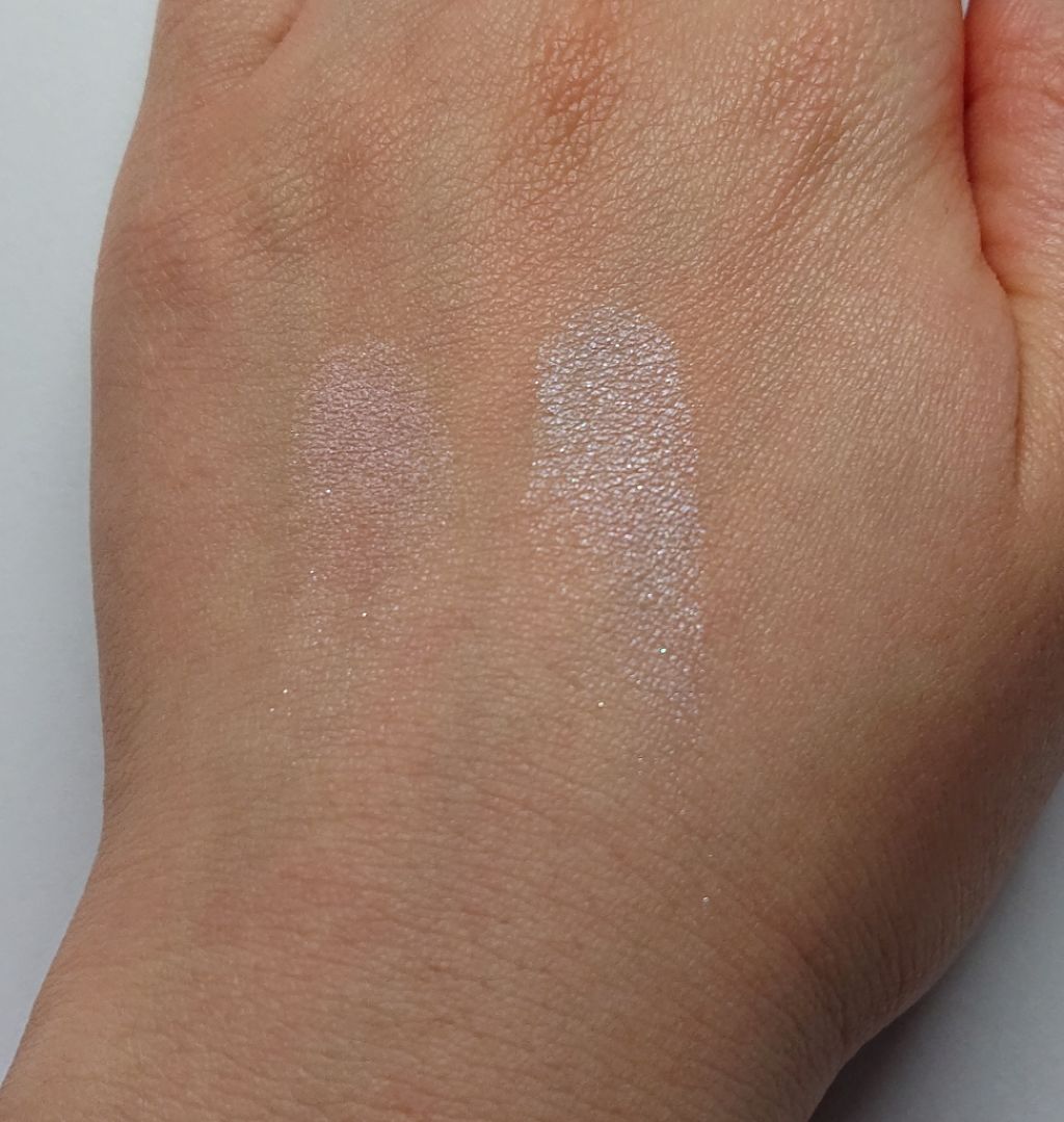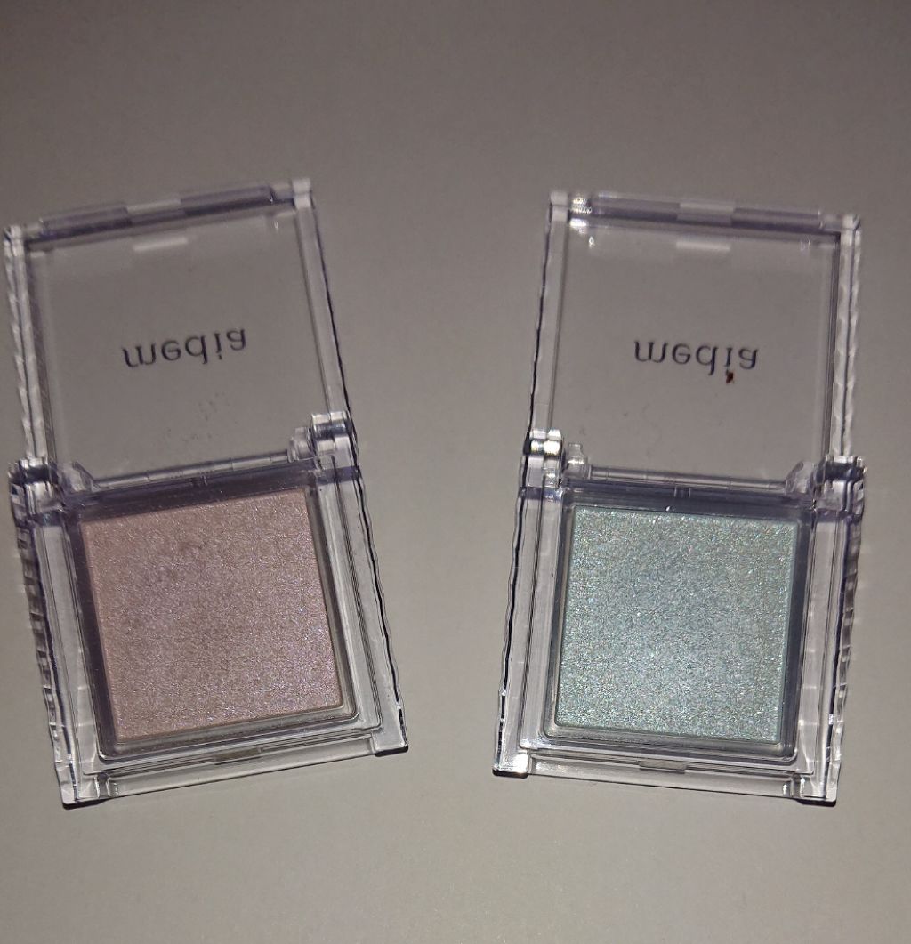 01シンプリーピンク05ラステットローズ柔らかめの細かくて軽い粉質です。ラメ・グリッダーもしっとりしていて、柔らかいです。粉飛びはしにくく、ラメは多少飛びますが、酷くはないかなと思いました。発色は色味によって、薄づきだったり濃い発色だったりと...