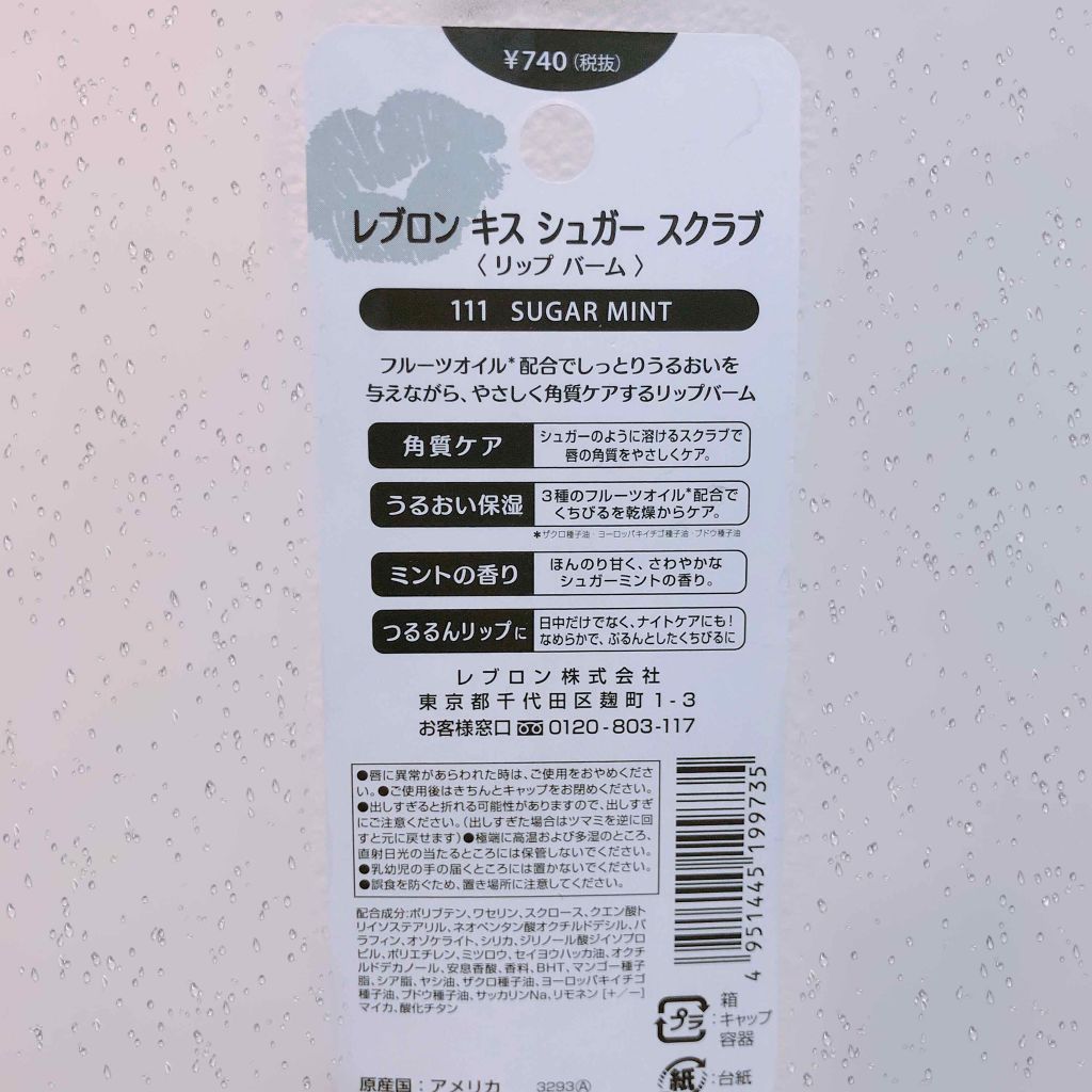 | リップスクラブランキング第8位 | 程よいジャリジャリ感で、メントールのスースーは塗った直後はあんまり感じず、しばらくしてからこちらも程よいスースー感🌿 | 詳細を見る | ||