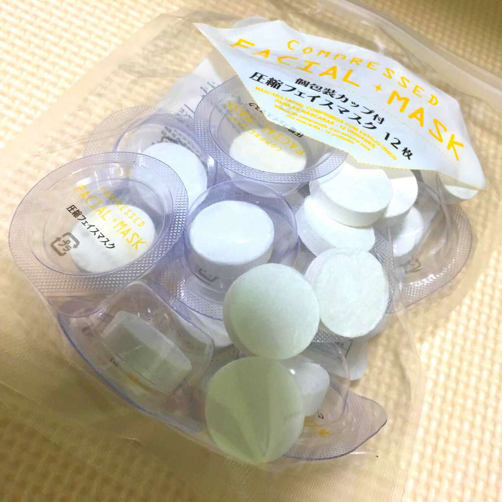 DAISO圧縮フェイスマスクたまに、これを使ってパックしているよ。110円で、35個も入って、コスパいいよね。パルプ100%化粧水を入れると膨らんでマスクになる。化粧水のフタを外して、圧縮パックを入れて、化粧水を注いで、圧縮パックが膨らむわけ...