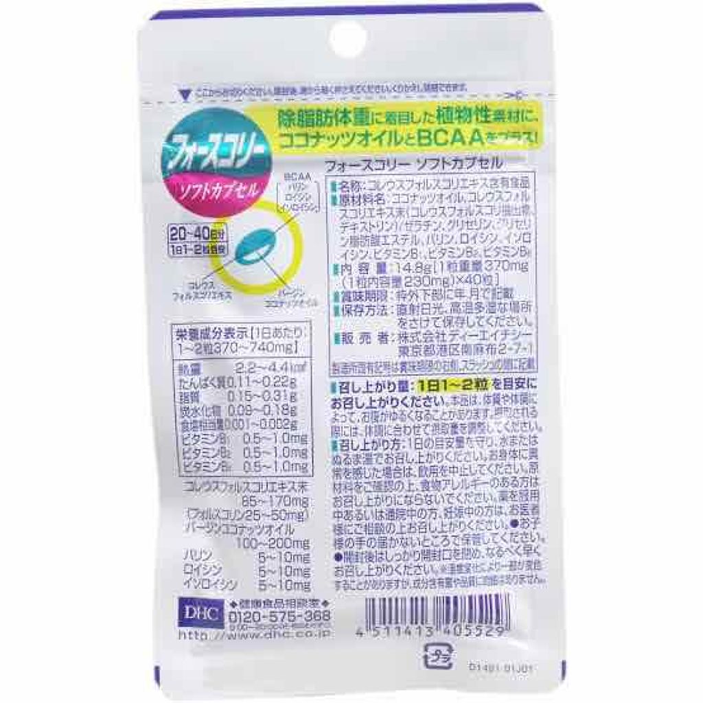 - DHCの定番人気ダイエットサプリ『フォースコリー』のソフトカプセルタイプ。[コレウスフォルスコリエキス末]の量やサプリメントの形状に配慮し、ニオイなどが気にならない、やさしい配合にしました。 [コレウスフォルスコリエキス末]は、南アジアに自生するコレウスフォルスコリというシソ科植物の根から抽出した成分。除脂肪体重(Lean Body Mass)に着目した天然由来の植物性素材フォルスコリンを含んでいます。『フォースコリー ソフトカプセル』には[コレウスフォルスコリエキス末]に加え、スタイル成分として人気の[ココナッツオイル]、筋力キープに役立つ[必須アミノ酸]と、ダイエッターが摂りたいビタミン[ビタミンB類]を配合しました。まとめてダイエット成分を摂りたい方、ダイエット初心者の方、フォースコリーを試したがニオイが気になった方などに、おすすめのサプリメントです。