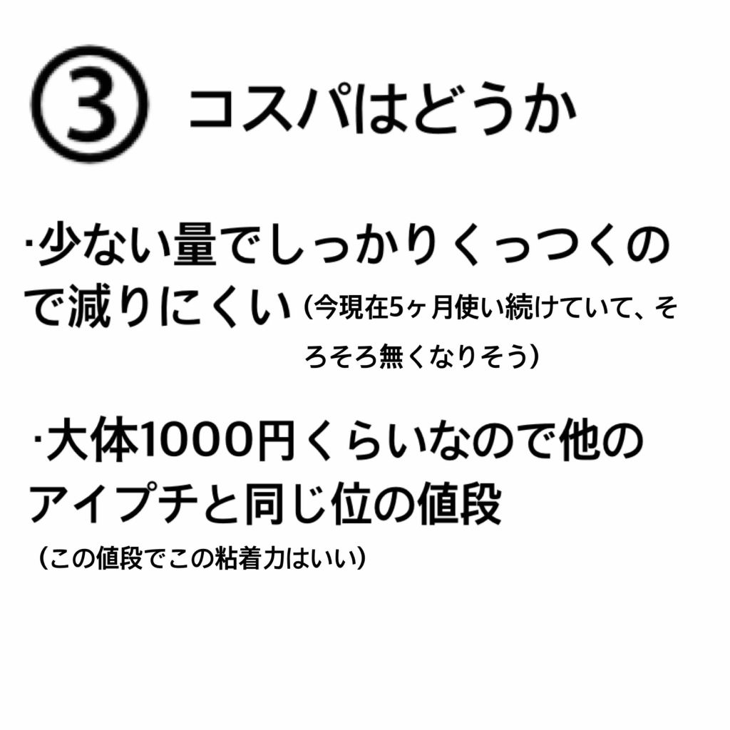 これはつけまのりですけど普段私はアイプチとして使っています👍つけまのりなのでもちろん接着力はすごいし、綺麗に二重が出来ます!いつもつけまをつけていて、アイプチをしている人は一石二鳥ではないでしょうか!笑二重を作る線に細く塗ったらきれいに二重が...