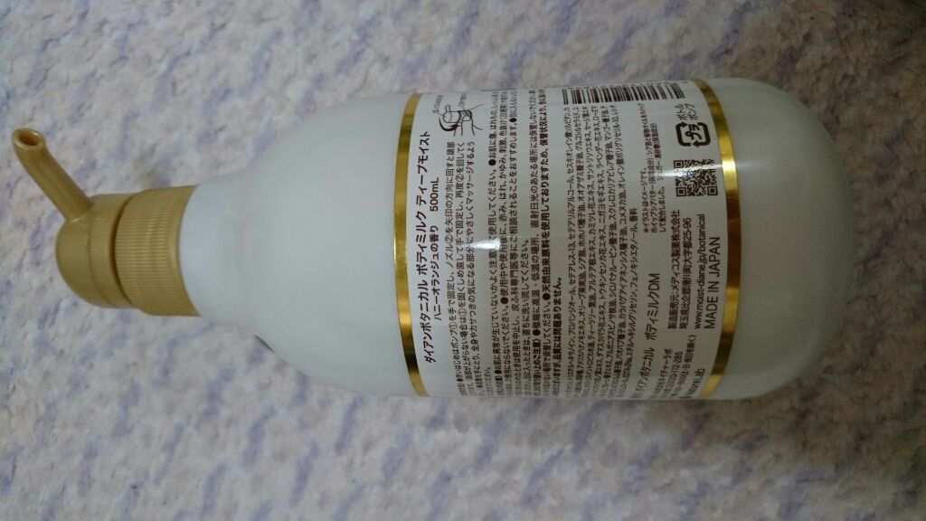500mlと大容量で 子どもと一緒に使えるのは嬉しいです 香りは結構強めで甘〜い香りがします ミルクを手のひらに出してみるとする〜っとすべっていきます のばしやすくてあっという間に全身に塗れました