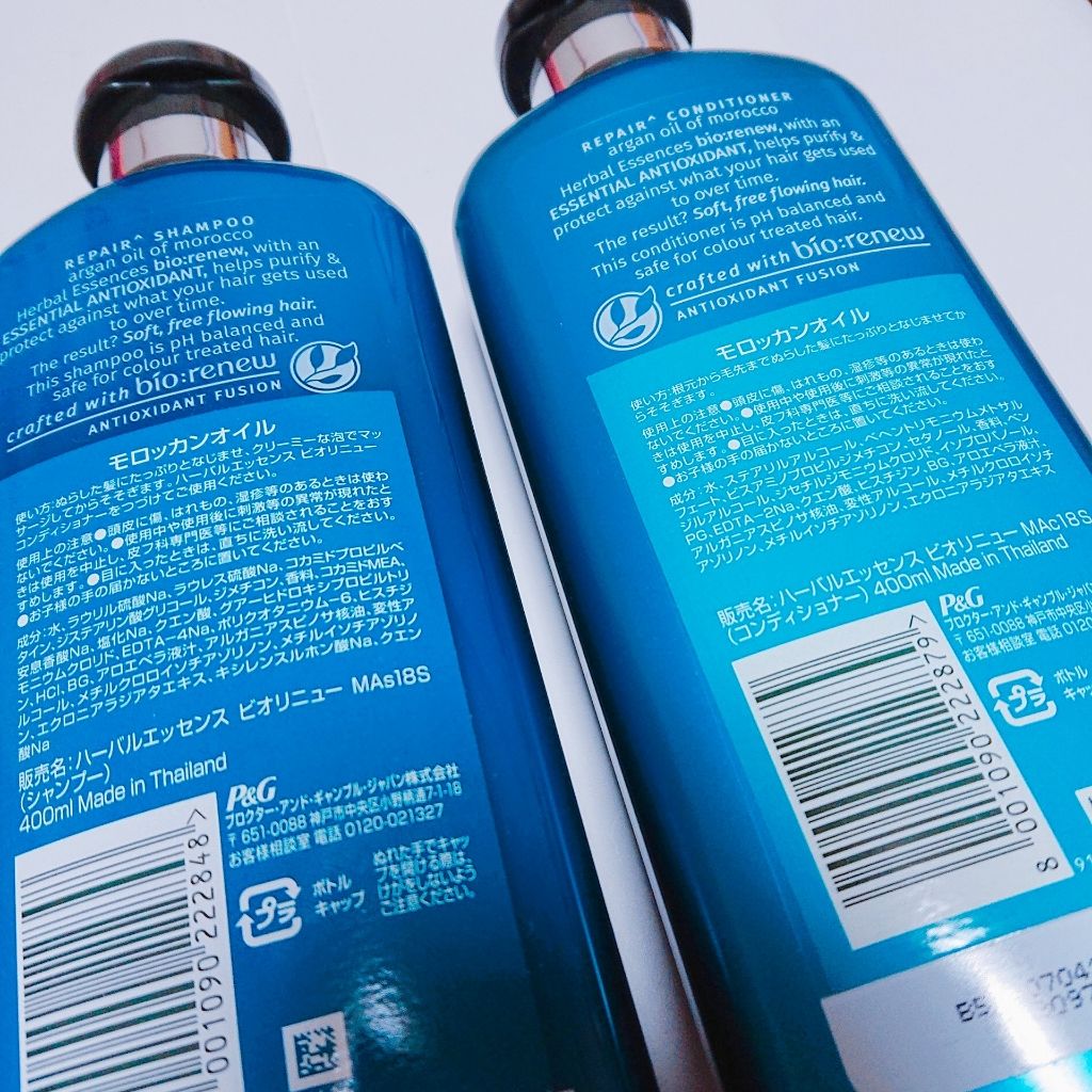 商品詳細情報ハーバルエッセンス ビオリニュー モロッカンオイル シャンプー/コンディショナー