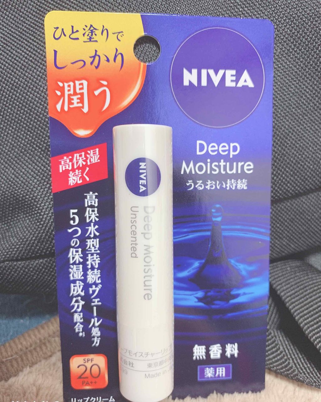 唇ふっくら、しっかり保湿力が続く♪ NIVEA DEEP Moisture SPF26 PA++ バニラ&マカデミアの香り 潤いの持続力があるから日中も唇の乾燥を気にせず過ごせるし、口紅のノリも良い感じ💄 保湿成分にはちみつ🍯やローヤルゼリーエキスが配合されてて、夜はリップパック代わりにもなる☺️
