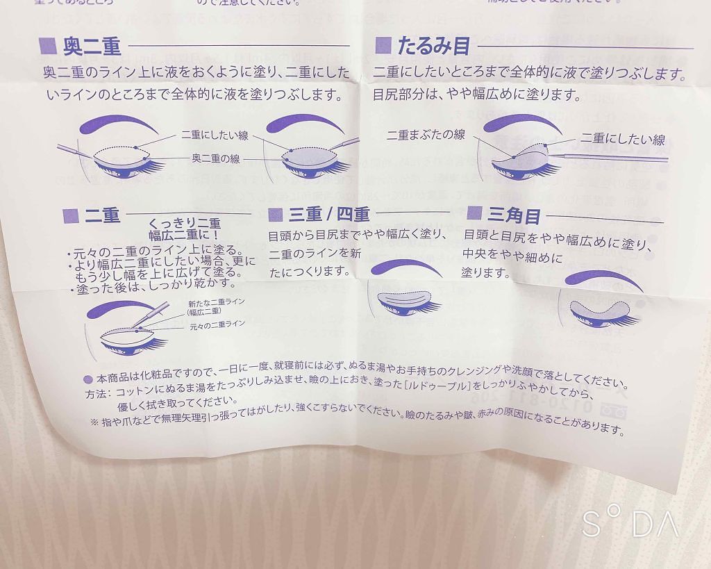 - ★簡単・速乾・ギュッと折り込む二重★ ①生え際に塗る。 ②二重にしたいラインまで全部塗る。 ③乾いたら、目を開ける。 製品の性質上0℃以下で保管すると凍結し、成分が分離して使用できなくなります。直射日光の当たる場所、温度変化の激しい場所を避け、10℃~25℃位の冷暗所に立てて保管してください。ゴムラテックスにアレルギーをお持ちの方は使用しないでください。