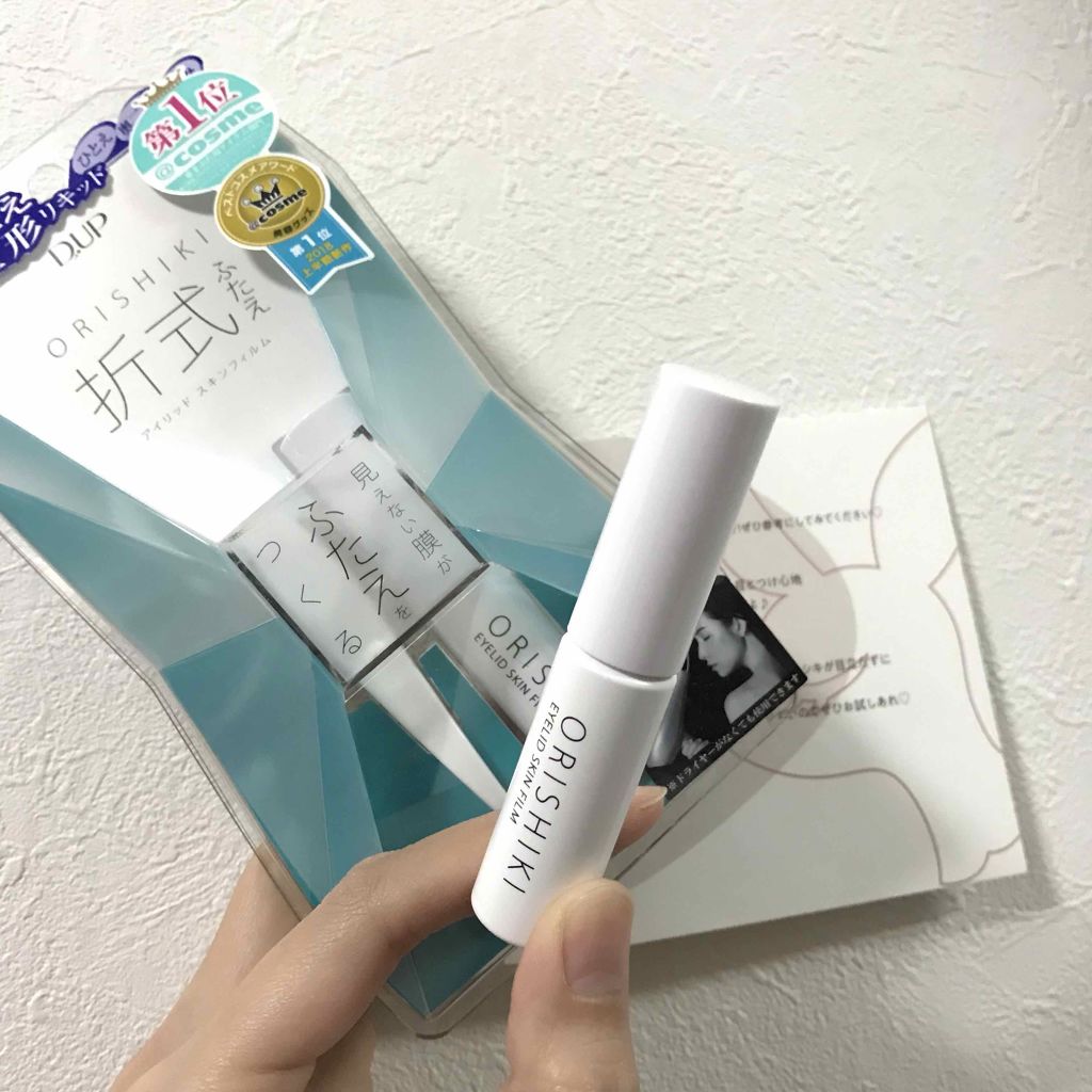 D-UP の #オリシキアイリッドスキンフィルム 皮膜式の二重コスメで、バレにくい自然な二重を作ることができます。 二重幅を太くしすぎると逆に目が小さく見えたりするので、自然に仕上がる幅を見つけるのがポイント。 オリシキは目を閉じてもバレにくいし、仕上がりが自然です! ドラッグストア、PLAZA、LOFT、ドンキなど わりとどこでも買えます!!