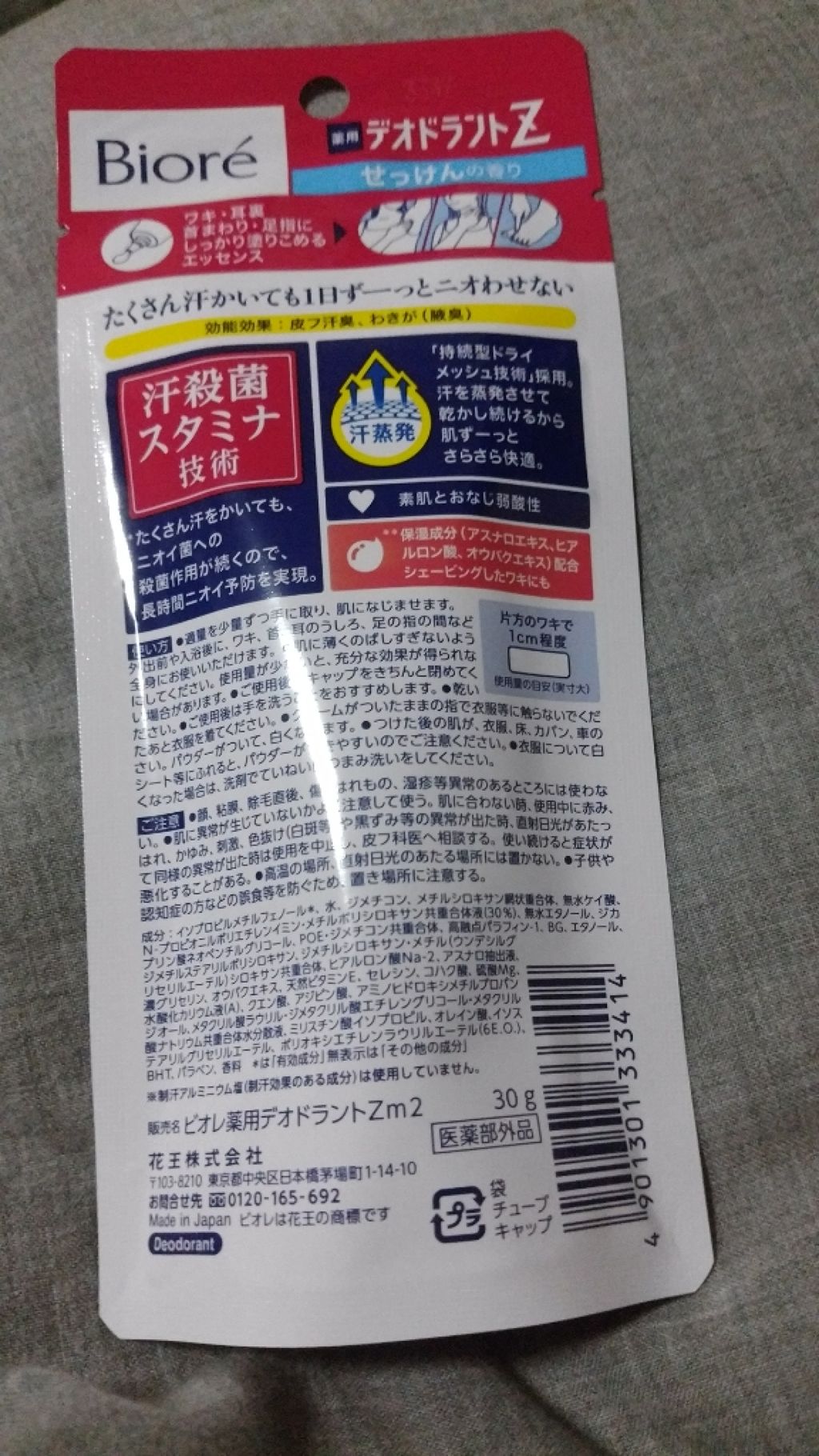 商品詳細情報ビオレ 薬用デオドラントZ エッセンス せっけんの香り