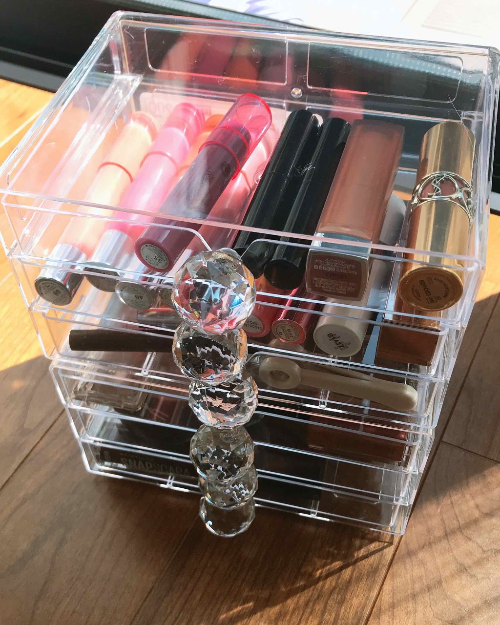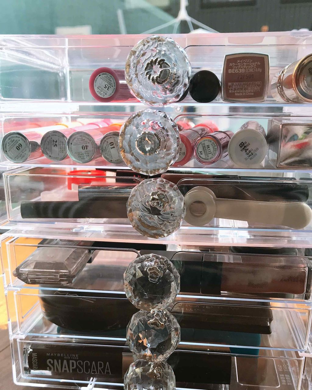 コスメかなり厳選して必要なもの、好きなものだけにしてるのですごくコンパクトに収まってる🤭 ▶︎DAISO 3段式クリアーケース ¥220 薄めなので、厚さがあるものは入らない。 プチプラの薄めのアイシャドウとかは2個重ねてちょうど入るくらい。 ▶︎DAISOボトルスタンド 縦に重ねることもできる飾る用のスタンド。 パケ可愛いコスメを飾るのにとてもいい。