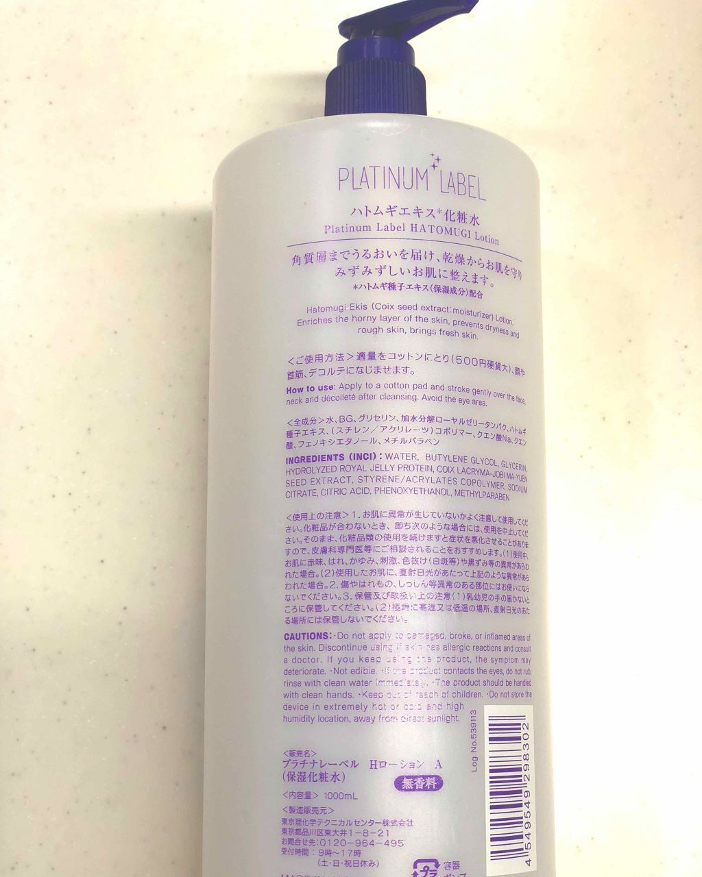 商品詳細情報プラチナレーベル ハトムギエキス化粧水