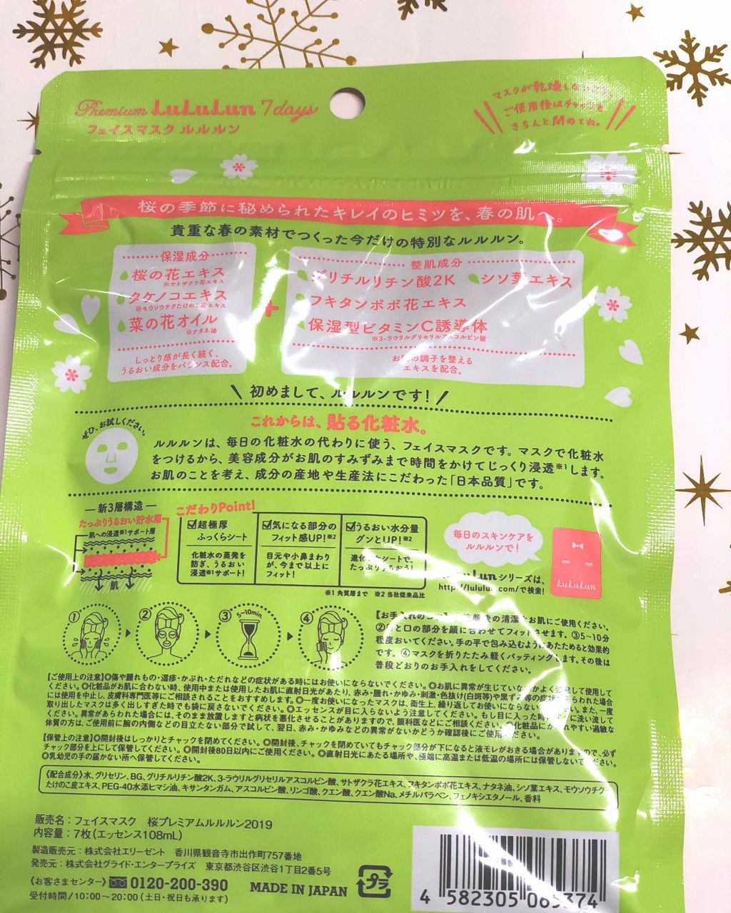 - <プレミアムルルルン 桜(さくらの香り)> 水、BG、グリセリン、酒粕エキス、サトザクラ花エキス、ヒアルロン酸Na、キサンタンガム、フェノキシエタノール、メチルパラベン、香料、ソメイヨシノ葉エキス、加水分解コラーゲン、クエン酸、デキストリン、PEG-40水添ヒマシ油、パンテノール、クエン酸Na、ヨモギ葉エキス、ジラウラミドグルタミドリシンNa、フキ葉/茎エキス <プレミアムルルルン 桜(さくらの香り)【旧】> 水、BG、グリセリン、酒粕エキス、サトザクラ花エキス、ヒアルロン酸Na、キサンタンガム、フェノキシエタノール、メチルパラベン、香料、ソメイヨシノ葉エキス、加水分解コラーゲン、クエン酸、デキストリン、PEG-40水添ヒマシ油、パンテノール、クエン酸Na、ヨモギ葉エキス、ジラウラミドグルタミドリシンNa、フキ葉/茎エキス