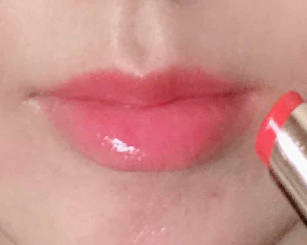多幸感あふれるクリアなコーラル🩷 特に時間が経つと蛍光感がでてきちゃう。 THEピンクのリップを求めている人にピッタリ! ティッシュオフしても若干色は残ってる! おすすめの塗り方は、いつもよりも少し濃いめに塗ってから、ティッシュオフ!