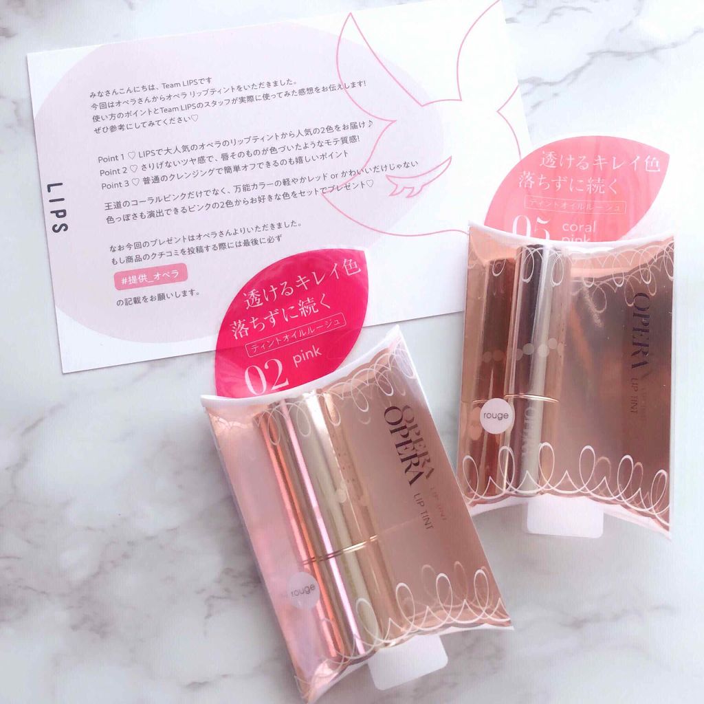 いっちゃん❤️ おぉー02番のピンクはドンピシャだね(*´꒳`*) コーラルの方もめっちゃ似合ってる❣️😳 ブルベさんでも似合うコーラルなんだね👏✨ オペラ、テスターしてどの色買うか迷ってまだ買えてない…😓このティントかもう1種類のシアーなタイプかも迷う💦 いっちゃんのこの投稿クリップ🖇させてもらうね👏