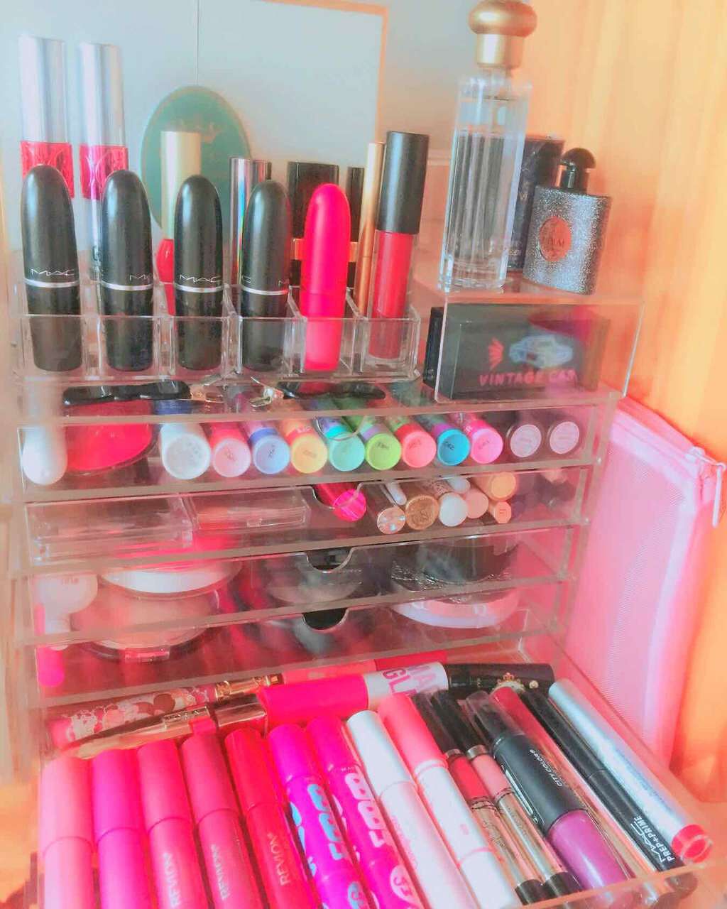 私のコスメ収納です☺︎この他にもあまり使わないやつやメルカリに売っているものがBOXに入っていますが大体この机の上に乗せてます!何か気になる商品があったりしたら聞いてください♡種類事に紹介して欲しいという方が居ればこれからそういう写真もとって...
