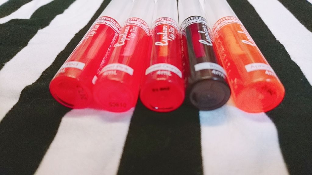 ダイソーのティント❣️全部ウォーターティントって感じ。ひと塗りだと薄めだから何度か塗ったらいい感じです❤一枚目の写真で左から、ジューシーレッドスウィートピンクスウィートオレンジローズアプリコットピンクジューシーレッドは赤というよりはピンクって...