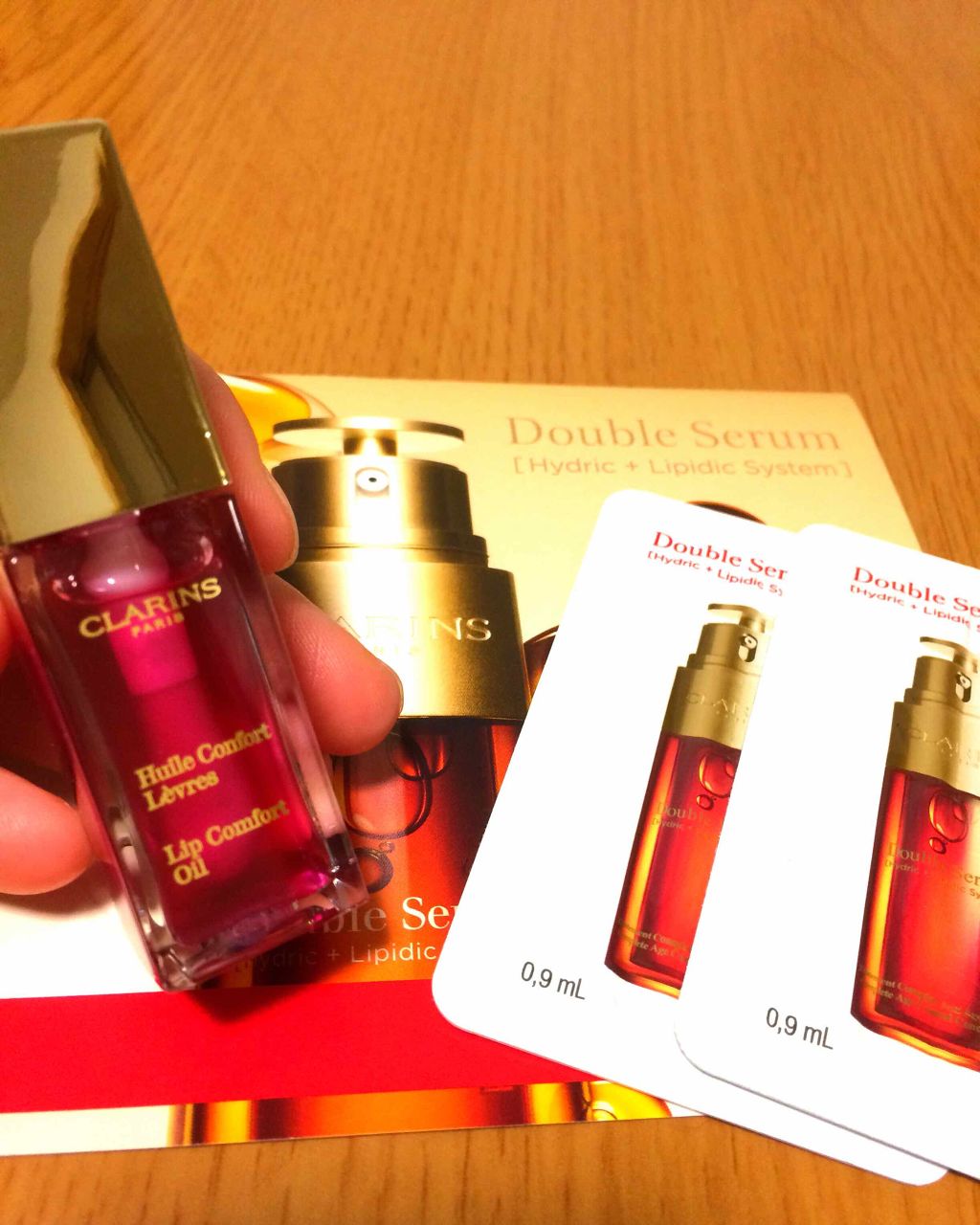 クラランスと言えば、な美容液。昨年リニューアルしたんだそう。 水分と油分がボトルの中で分かれていて2層式になっているので、なんとワンプッシュで「水分7:油分3」で出てくるよ✨ トロッとしたクリアなブラウンっぽい美容液。手で混ぜるとすぐに馴染みます。