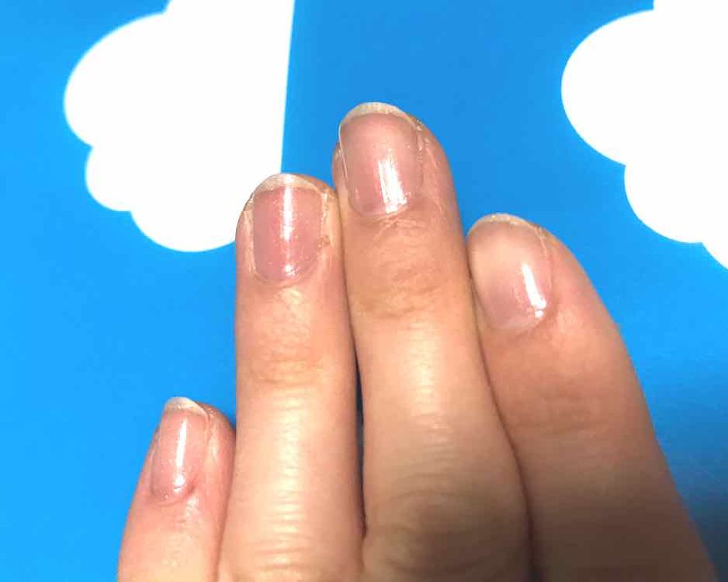 補強力はしっかりある よほど厚めに塗らなければ、乾くのは早い サラサラしていて塗りやすい ベースコートとしても使える 筆の液含みが良い 何かを塗ってる感はあり 磨いただけのツヤって感じではないので、ネイル禁止の職場の人や学生さんには向かない