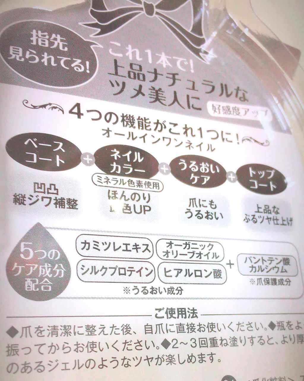 | オールインワンネイルランキング第2位 | 超微細なファイバーと厚みのある 塗膜が、爪やアレンジネイルを守り、 爪強化もしてくれます✨ | 詳細を見る | |