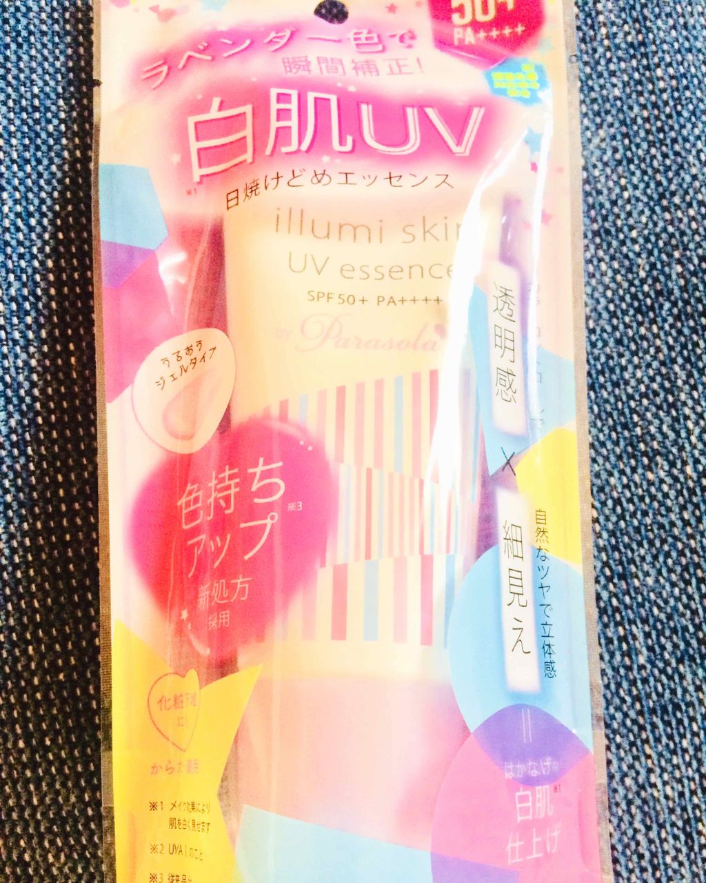 - ※2020/02/07に【ネオイルミUVエッセンス】にリニューアルしました。 SPF50+・PA++++ UVケアしながらキレイな白肌に瞬間補正する、ラベンダー色の日やけ止めエッセンスです。 色持ちとウォータープルーフ効果が更にアップしました。 ラベンダー色のカラーコントロール効果で肌に血色感と透明感を与えながら、マジックフォーカスパウダーの効果で肌に立体感を与え、自然なツヤ感で身体を細く見せてくれます。 透明感アップ成分として、保湿型ビタミンC誘導体、浸透型ビタミンC誘導体、高浸透型ビタミンC誘導体、アルブチン、プラセンタエキス、ハトムギエキス、セラミド、ヒアルロン酸、コラーゲン、リピジュアRを配合。 のびが良く、サラサラした使い心地。 ウォータープルーフタイプ。 顔・からだ用。 無香料・無鉱物オイル・弱酸性。 深紫外線対応成分配合。