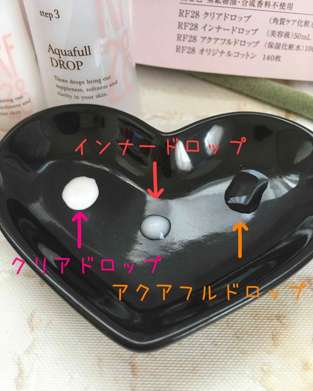 - 【セット内容】 RF28 クリアドロップ(2+ : 普通・混合肌用)角質ケア化粧水 粉末部0.6g、溶液部20mL RF28 インナードロップ美容液 12.5mL RF28 アクアフルドロップ保湿化粧水 25mL (オリジナルコットン 32枚付き)