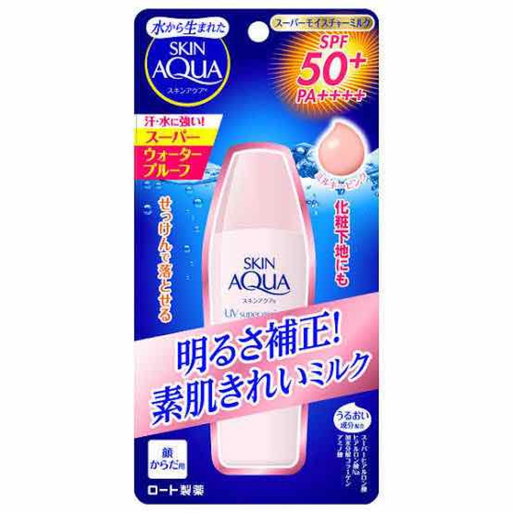 - 「スキンアクア スーパーモイスチャーミルク」は、スキンアクアシリーズ内で最高クラスのUVカット効果があるミルクタイプの日やけ止め。SPF50+/PA++++。汗・水に強いスーパーウォータープルーフ。 水のようなつけ心地。4つのうるおい成分「スーパーヒアルロン酸※1、ヒアルロン酸Na、加水分解コラーゲン、アミノ酸※2」配合!やさしさへのこだわり。アレルギーテスト済み※3、無香料、無着色、鉱物油フリー。 石けんで落とせます。顔・からだ用で、化粧下地にもオススメです。 ※1:アセチルヒアルロン酸Na ※2:アシル化アミノ酸(ラウロイルリシン) ※3:すべての方にアレルギーが起こらないというわけではありません。 紫外線防止成分:紫外線吸収剤・紫外線散乱剤