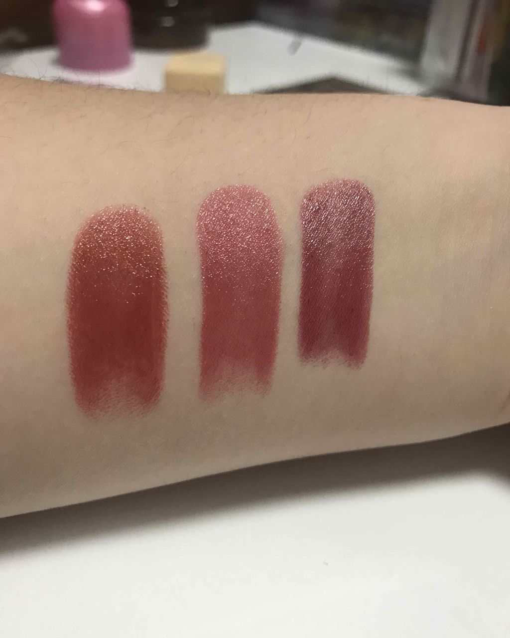 新大久保にCLIOのパレット買いに行った時に一緒に買ってきた物です!まず、ムースキャンディーティントの1つめと2つめの順番が逆です、ごめんなさい😰🙏2枚目は塗ってそのまま3枚目はティッシュで擦った物、3枚目はクレンジングで落とした物です!どれ...