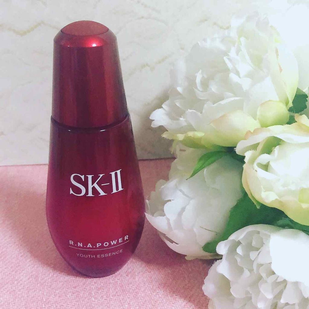 - 新製品のSK-II R.N.A.ユース エッセンス*で、キレイをパワーアップ。 みずみずしいエッセンスが肌の奥まで素早く浸透*。ぷるぷる、いきいきとした印象の肌へ導きます。 特別にデザインされたスポイト「オート フィル ドロッパー」で、一回のお手入れに最適な量を手にとることができます。 ●使用成分について ピテラ™と複合成分RNアーキテクトを配合したエッセンスが素早く肌になじみ、たっぷりとうるおいを与え、ぷるぷる、いきいきとした印象の肌へ導きます。 ・ピテラ™* 特別な酵母の発酵過程で生み出され、肌の中に本来存在する天然保湿因子(NMF)のいくつかを含みます。また、ビタミン類、ミネラル類、アミノ酸類など50種類を超える有用成分を含み、肌本来の働きを整えます。 ・グリコ-リペア® イナゴマメから抽出されたエキスを含む複合成分で、環境ストレスから肌を守り、肌本来の健やかさを保ちます。 ・ナイアシンアミド (保湿成分)ビタミンB3群のひとつとして知られるナイアシンアミドは、肌のバリアに関わる角層を整え、明るく輝くようなハリのある肌へと導きます。 ビタミンB3群のひとつとして知られるニコチン酸アミドWは、透明感のある肌へと導きます。 ●得られる効果 うるおい/なめらかなキメ/エイジングケア ●お手入れ方法 ステップ 1:化粧水のあと、 適量(スポイト1回分、 直径約2cm大)を手のひらにとります。 ステップ 2:額・両頬・あごにつけて顔全体にのばします。 ステップ 3: 顔全体を軽くパッティングしますと、肌に素早くなじみます。 ●使用するタイミング 朝夜2 回/日