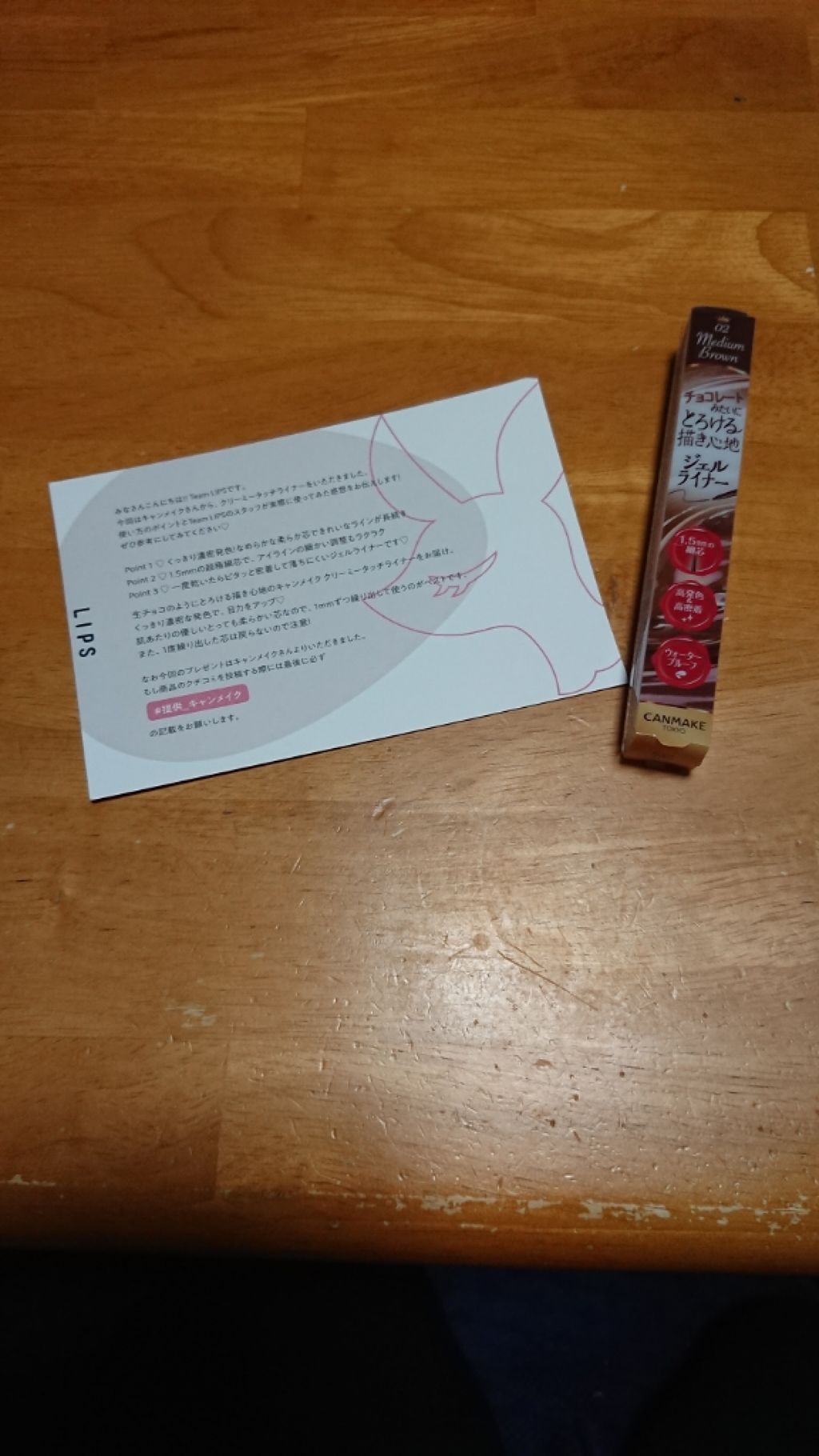 LIPS様を通じ、CANMAKE様より頂きました。ありがとうございますm(__)mずっと欲しかった、使ってみたかった商品を頂けて、嬉しかったです。使用感はパッケージに書いてある通り、やわらかく滑らかな描き心地ですが、ピタッと密着してよれにくく...