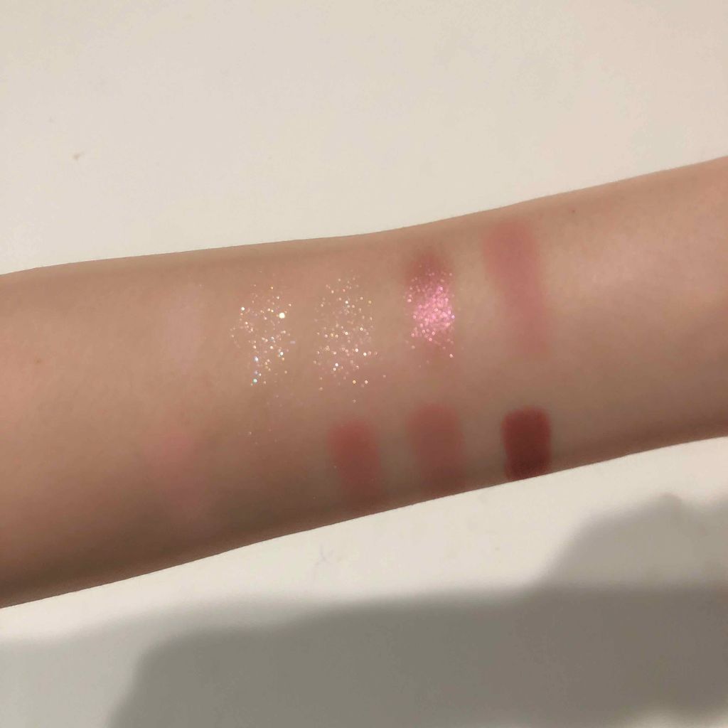 こちらは4/21発売の限定色で、私は今回ファンクラブ限定の先行販売で購入しました! 色味は透け感のあるピンクブラウンに青ラメたっぷり♡これはもう言わずもがなブルベさんにおすすめ! ただ青ラメは下瞼に塗りすぎるとどんなに青みが得意な方でも少し顔が青ざめるので上瞼メインで使うのがおすすめ!