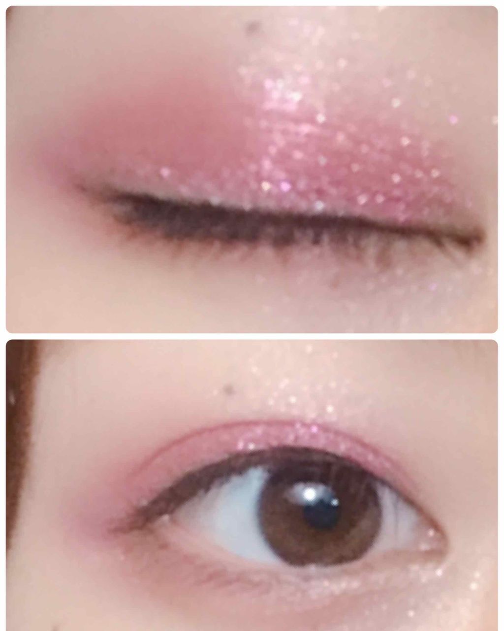 メモ右→BUBBLY左→DRIFT右をアイホール全体に塗る左を二重幅より少し広めに塗るラメラメピンクで可愛い...