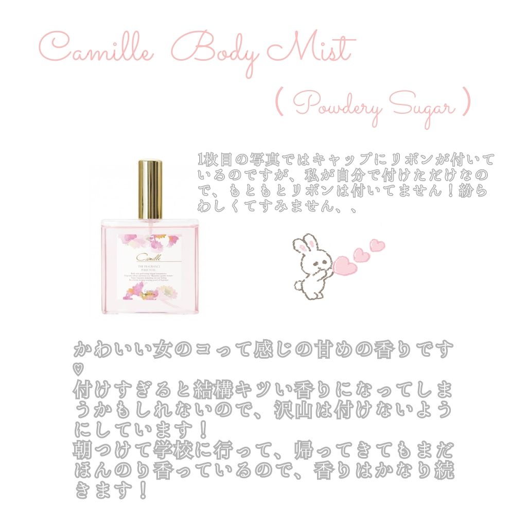 | 香水ランキング第3位 | THE 女の子!って感じの香りですし、そんなに強い香りではないので普段使いしやすいです🙆♀️ | 詳細を見る | |
